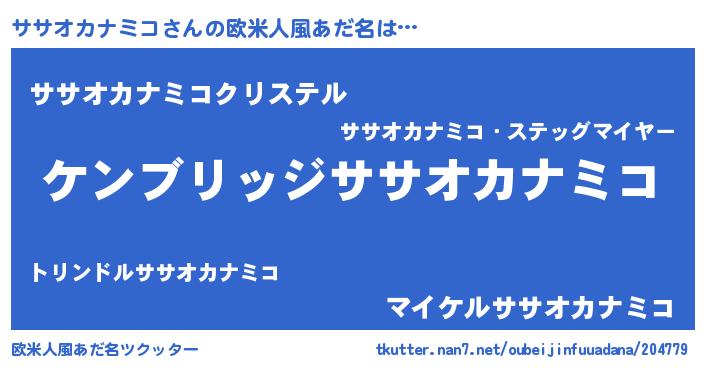 | 男性向けラノベタイトル風あだ名 | 『魔法科高校のササオカナミコ』 |