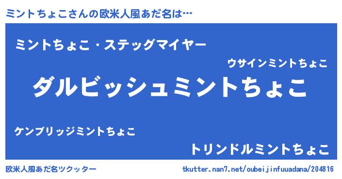 | 胡散臭い通販商品みたいなあだ名 | 『来世でも幸せになれる健康食品…その名も「ミントちょこ」』 |