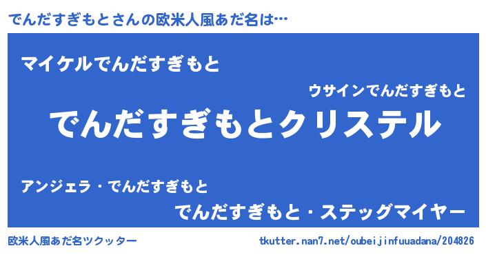 | 男性向けラノベタイトル風あだ名 | 『やはりでんだすぎもとの青春ラブコメはまちがっている 』 |