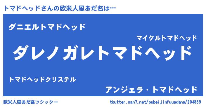 | 男性向けラノベタイトル風あだ名 | 『この素晴らしい世界にトマドヘッドを!』 |
