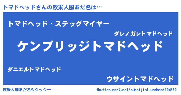 | 意味不明あだ名 | 『自称トマドヘッド』 |