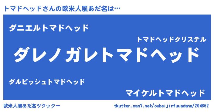 | 意味不明あだ名 | 『住所不定無職トマドヘッド(50歳)』 |