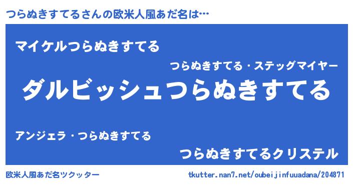| ヘコむあだ名 | 『つらぬきすてる(笑)』『つらにゅー』 |