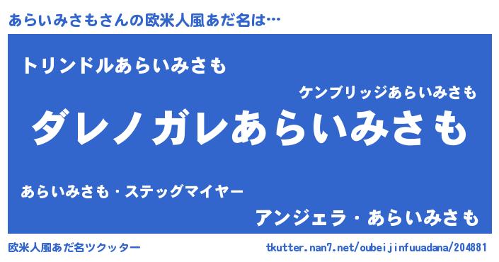 | 料理風あだ名 | 『あらいみさものカルパッチョ風』 |