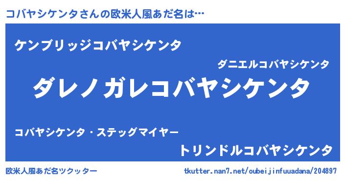 | 女子向けラノベタイトル風あだ名 | 『悪役コバヤシケンタに転生したようですが、知った事ではありません』 |