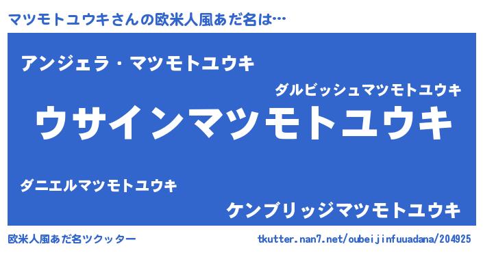 | ポケモン風あだ名 | 『ヒマツモトユウキ』『マツゴンZ』 |
