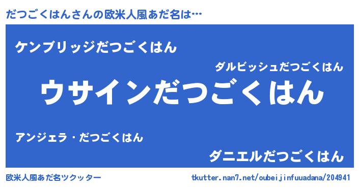 | 男性向けラノベタイトル風あだ名 | 『だつごくはんの嫁は女の子じゃないと思った?』 |