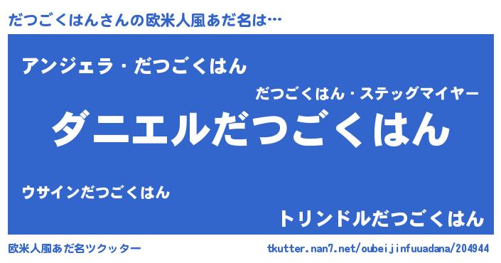 | 男性向けラノベタイトル風あだ名 | 『おまえをオタクにしてやるから、俺をだつごくはんにしてくれ! 』 |