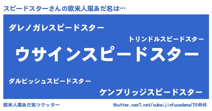 | 男性向けラノベタイトル風あだ名 | 『スピードスターの嫁は女の子じゃないと思った?』 |