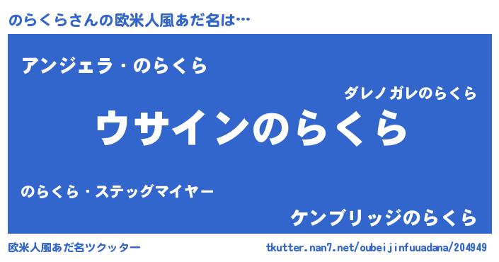 | 男性向けラノベタイトル風あだ名 | 『のらくらの嫁は女の子じゃないと思った?』 |