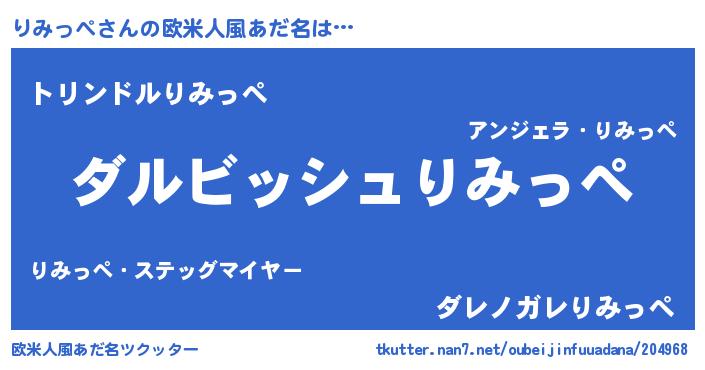 | 男性向けラノベタイトル風あだ名 | 『りみっぺという概念が存在しない退屈な世界 』 |