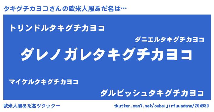 | 男性向けラノベタイトル風あだ名 | 『この素晴らしい世界にタキグチカヨコを!』 |