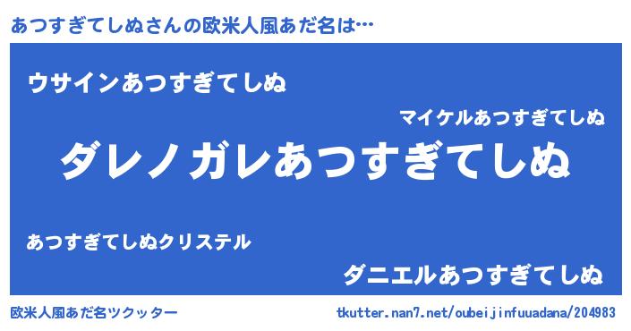 | ヘコむあだ名 | 『あつぷりん』『あつにー』『豆乳』 |