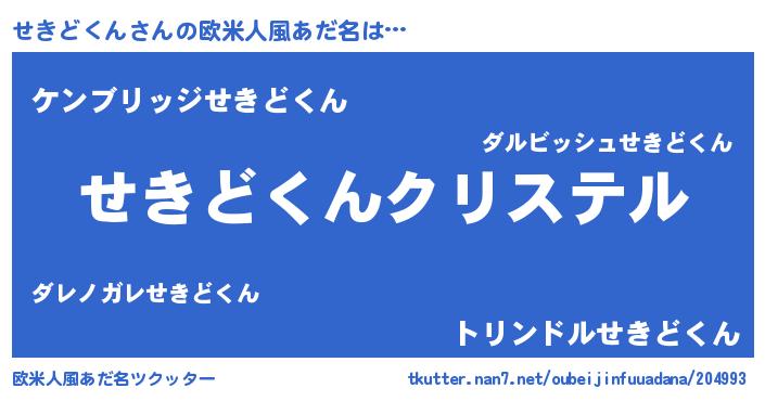 | 意味不明あだ名 | 『せきどくんフォーエバー』 |