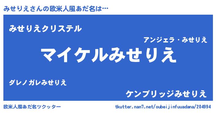 | ファンタジー風あだ名 | 『ミセフェル』『エターナルミセリエー』 |