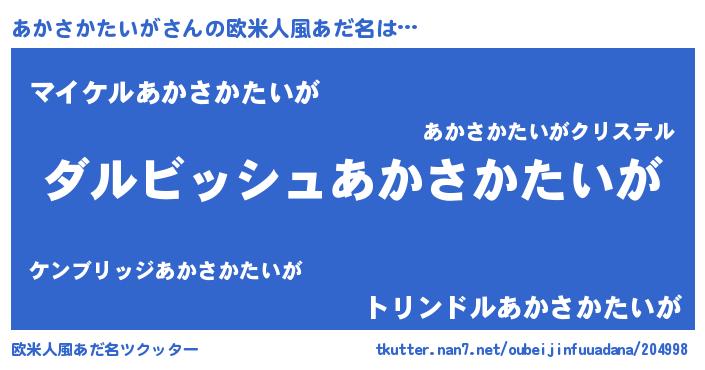 | ヘコむあだ名 | 『あかさかたいが(笑)』『あかにー』 |