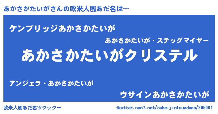 | 意味不明あだ名 | 『あかさかたいがフォーエバー』 |