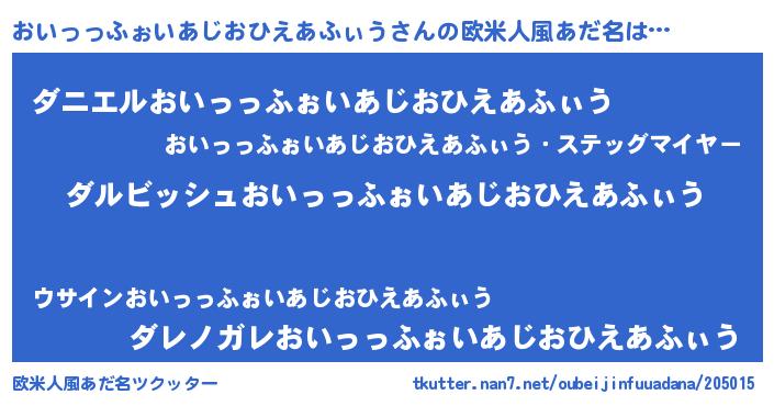 | ヘコむあだ名 | 『おいっっふぉいあじおひえあふぃう(苦笑)』 |