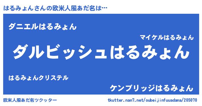 | 意味不明あだ名 | 『永久保存はるみょん』『自称はるみょん』 |