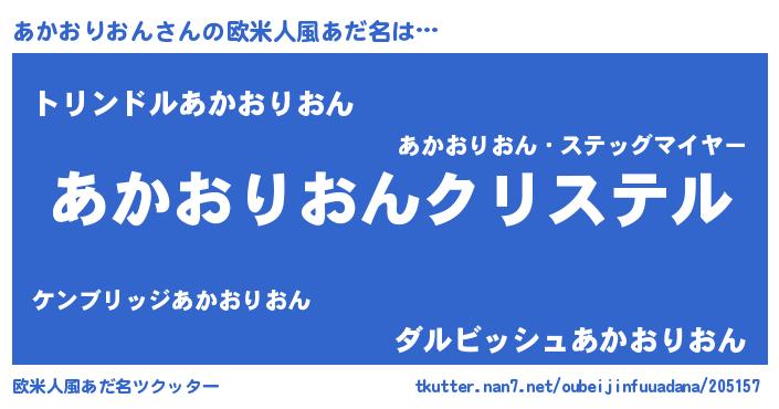 | 女子向けラノベタイトル風あだ名 | 『あかおりおんの雑貨屋さん』 |