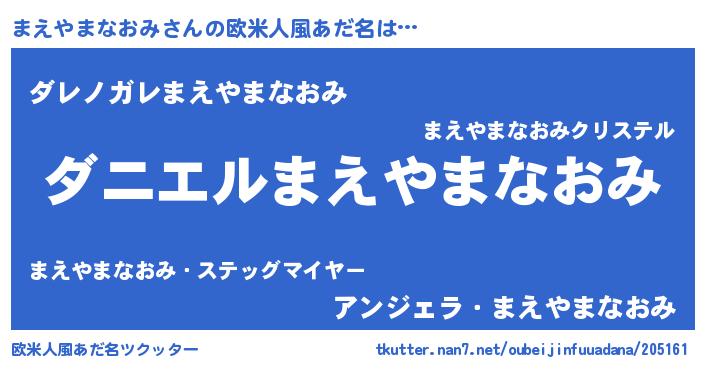 | ヘコむあだ名 | 『なまこ酢』『まえやまなおみ(苦笑)』 |