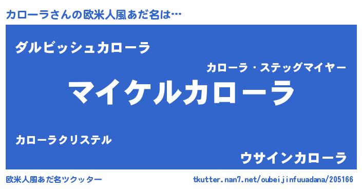 | 男性向けラノベタイトル風あだ名 | 『カローラの憂鬱』 |