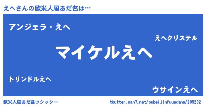 | 男性向けラノベタイトル風あだ名 | 『エヘアートオンライン』 |