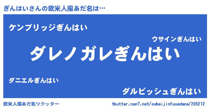 | 男性向けラノベタイトル風あだ名 | 『この素晴らしい世界にぎんはいを!』 |