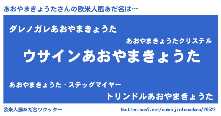 | ポケモン風あだ名 | 『ヒアオヤマキョウタ』『アーオイ』 |