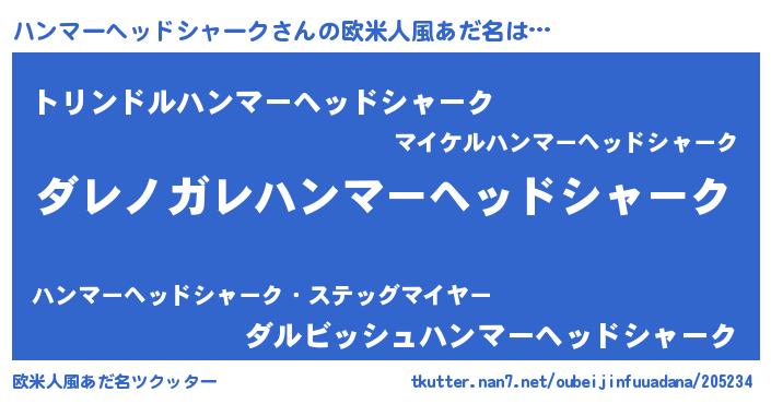 | 意味不明あだ名 | 『住所不定無職ハンマーヘッドシャーク(68歳)』 |