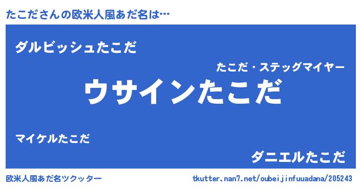 | 男性向けラノベタイトル風あだ名 | 『たこだの嫁は女の子じゃないと思った?』 |