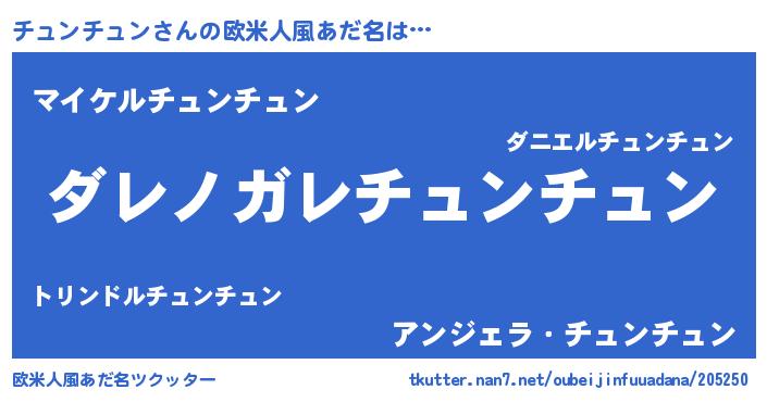 | 意味不明あだ名 | 『住所不定無職チュンチュン(79歳)』 |
