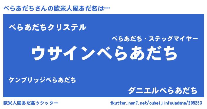 | 女子向けラノベタイトル風あだ名 | 『べらあだちの卵を拾いまして』 |