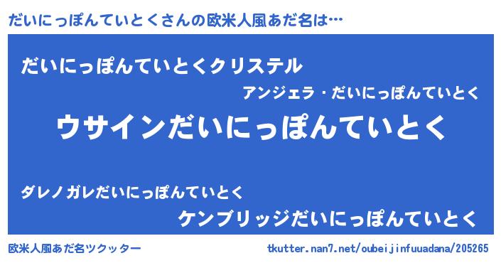 | 意味不明あだ名 | 『とにかく怪しいだいにっぽんていとく』 |
