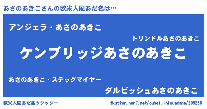 | 男性向けラノベタイトル風あだ名 | 『魔法科高校のあさのあきこ』 |