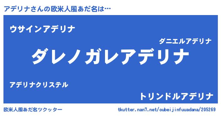 | ヘコむあだ名 | 『アデっぺ』『豆乳』『アデリナ(爆)』 |