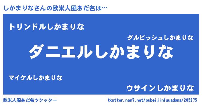 | ヘコむあだ名 | 『しかっぺ』『しかまりな(苦笑)』 |