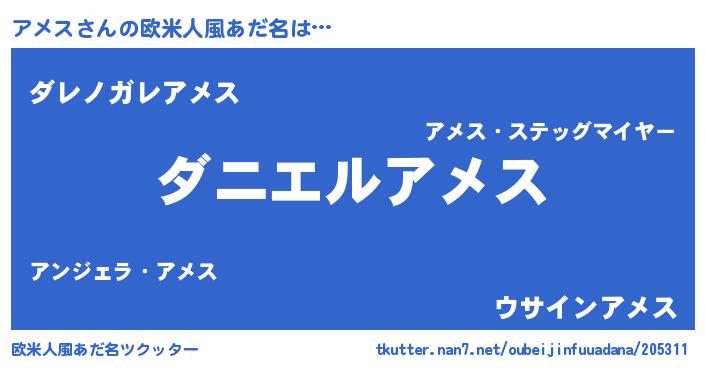 | 男性向けラノベタイトル風あだ名 | 『おまえをオタクにしてやるから、俺をアメスにしてくれ! 』 |