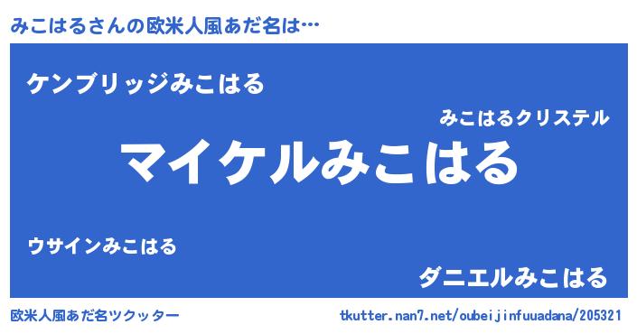 | 男性向けラノベタイトル風あだ名 | 『ミコハルアートオンライン』 |