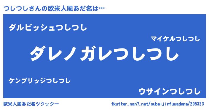 | 男性向けラノベタイトル風あだ名 | 『魔弾の王とつしつし』『つしつしの憂鬱』 |