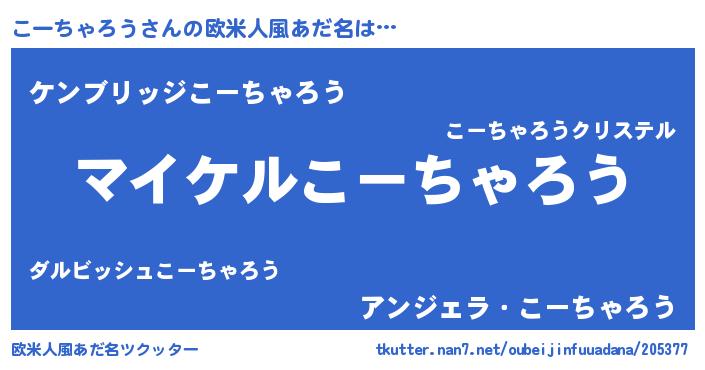 | 女子向けラノベタイトル風あだ名 | 『こーちゃろう姫と円卓の騎士』 |