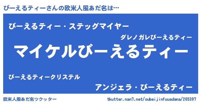 | ヒーロー風カッコイイあだ名 | 『スーパービーエルティー』 |