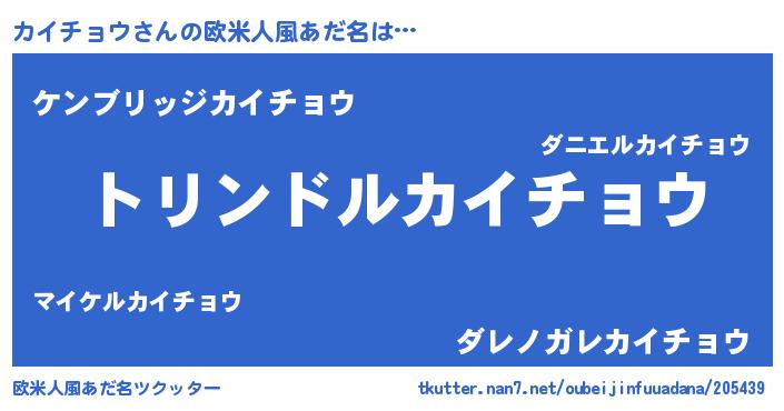 | ピコ太郎風あだ名 | 『カカ太郎』『カコ一郎』『カイ史郎』 |
