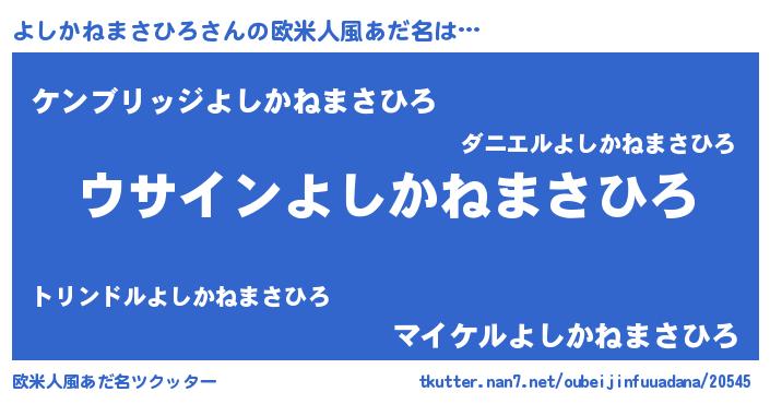 | 意味不明あだ名 | 『とにかく怪しいよしかねまさひろ』 |