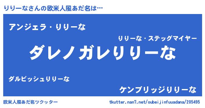 | 男性向けラノベタイトル風あだ名 | 『魔弾の王とりりーな』 |
