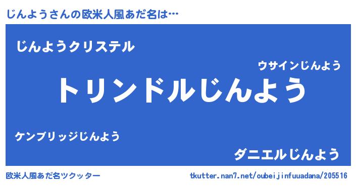 | 男性向けラノベタイトル風あだ名 | 『じんよう~年齢イコール彼女いない歴の魔法使い~』 |