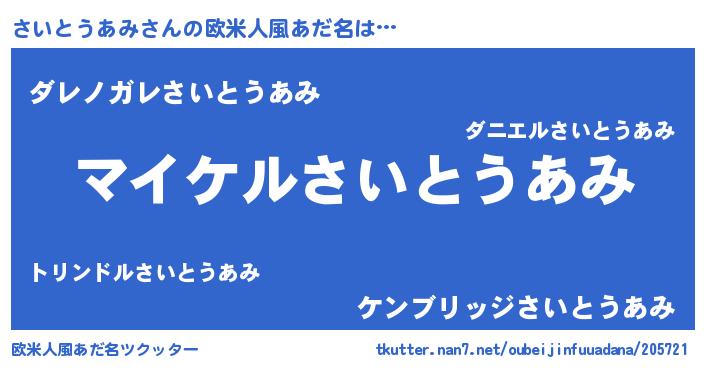 | 男性向けラノベタイトル風あだ名 | 『さいとうあみの憂鬱』 |