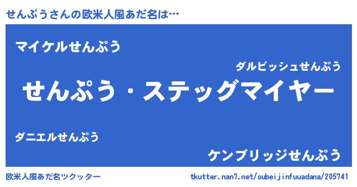 | 男性向けラノベタイトル風あだ名 | 『うちのせんぷうが世界を掌握している!』 |