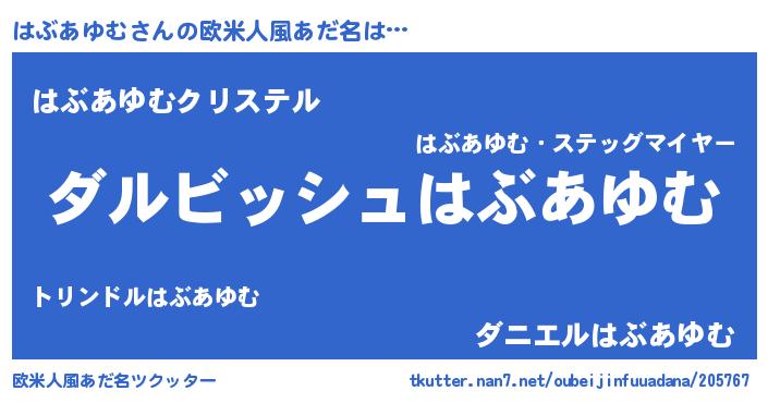 | 男性向けラノベタイトル風あだ名 | 『誰もが恐れるあのはぶあゆむが、ぼくの専属メイドになるようです。』 |
