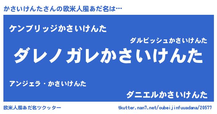 | 男性向けラノベタイトル風あだ名 | 『この素晴らしい世界にかさいけんたを!』 |